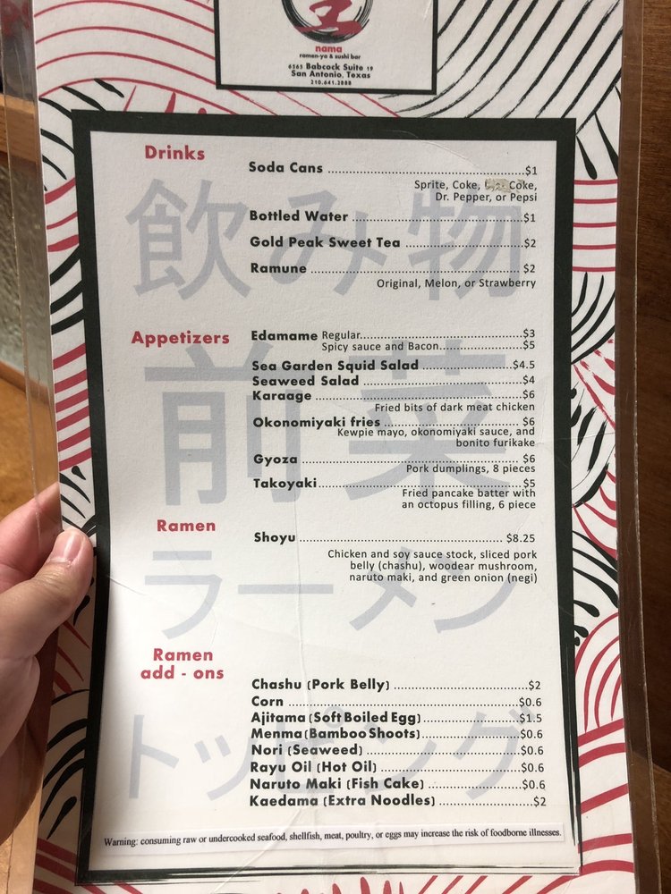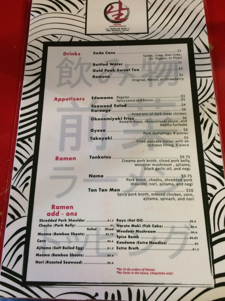 Located at 6526 Babcock Rd, San Antonio, TX, Nama Ramen delivers an authentic ramen experience that captivates both the palate and the spirit of Japanese cuisine. Known for its sumptuous assortment of broths, such as the silky Tonkotsu and the rich Miso Chicken, each bowl is crafted with quality ingredients, including tender pork belly and farm-fresh veggies. The restaurant's offerings extend beyond ramen, featuring exquisite specialty rolls like the Han Roll and the Kim Roll, perfect for those seeking diverse flavors.
